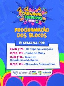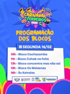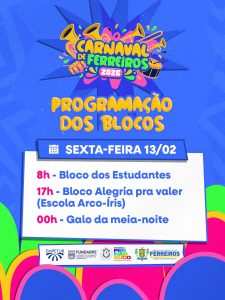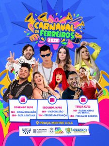 Programação oficial do Carnaval de Ferreiros 2026 – Prefeitura Municipal de Ferreiros