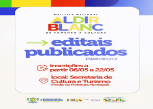 A Prefeitura de Ferreiros informa que já estão publicados os editais da Política Nacional Aldir Blanc (PNAB) – ciclo 2